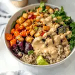 Fall Quinoa Salad is a vibrant, seasonal dish that combines cooked quinoa with a colorful array of autumn ingredients. This salad typically features roasted vegetables like sweet potatoes, brussels sprouts, and carrots, mixed with fresh greens and topped with nuts or seeds for added crunch. roasted carrots and lentils The dressing usually incorporates fall flavors such as maple syrup or apple cider vinegar, enhancing the natural sweetness of the ingredients. Full of nutrients and flavors, this salad is perfect for a healthy lunch or a festive dinner side.
