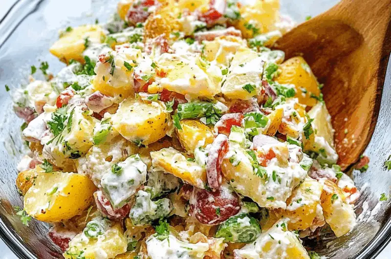 In summary, the Loaded Potato Salad (a Baked Potato Salad!), Easy Summer Salad Recipe is a delightful dish that brings comfort food to the summer table. With its creamy texture and savory toppings, it’s sure to be a hit at any gathering. Remember to bake your potatoes thoroughly and mix in fresh ingredients to enhance flavor. Whether you choose to customize it or stick with the traditional version, this recipe will quickly become a favorite among family and friends! For more inspiration, check out this Amish Country Casserole recipe.