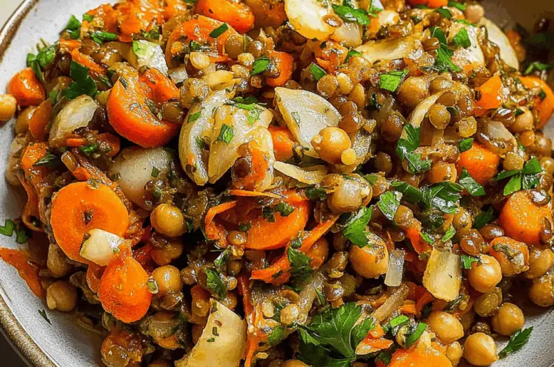 Warm Chickpea and Lentil Salad with Carrots is a nourishing and vibrant dish that transforms the concept of a salad. Featuring protein-rich chickpeas and lentils, this warm salad is uplifted by crunchy carrots and dressed in a zesty lemon vinaigrette. Perfect for any occasion, it’s both filling and refreshing, making it a go-to for quick lunches or elegant dinners.